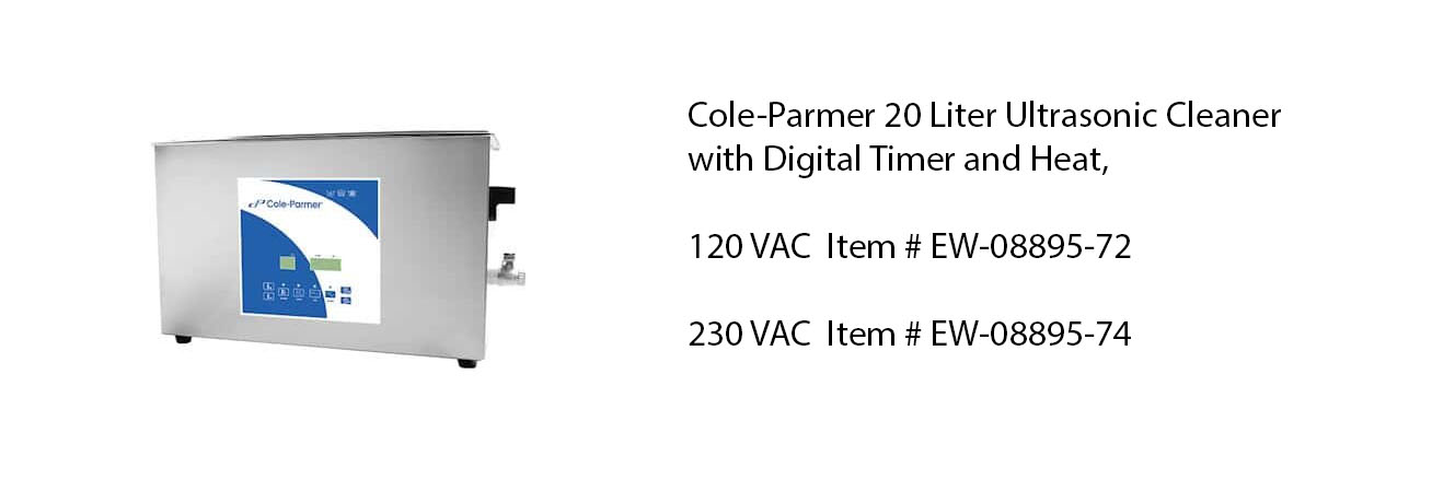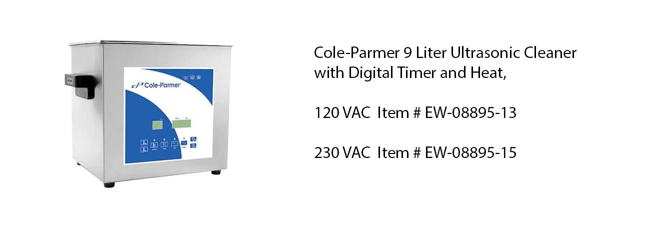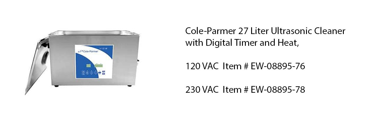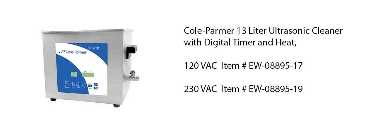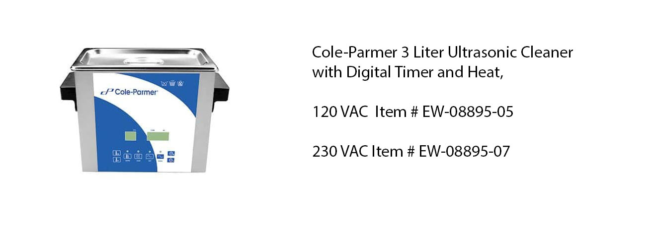 Cole-Parmer ultrasonic cleaners are extremely effective at removing dirt and grime which would normally require tedious manual cleaning. The high frequency ultrasonic wave vibrations create microscopic bubbles that implode violently causing the cavitation which creates an intense scrubbing action on the surface of the item being cleaned. The microscopic nature of the bubbles mean even the tiniest crevices will be cleaned thoroughly. Used in a wide variety of industries and applications almost any non-porous item that can normally be immersed in water can be cleaned with these units.