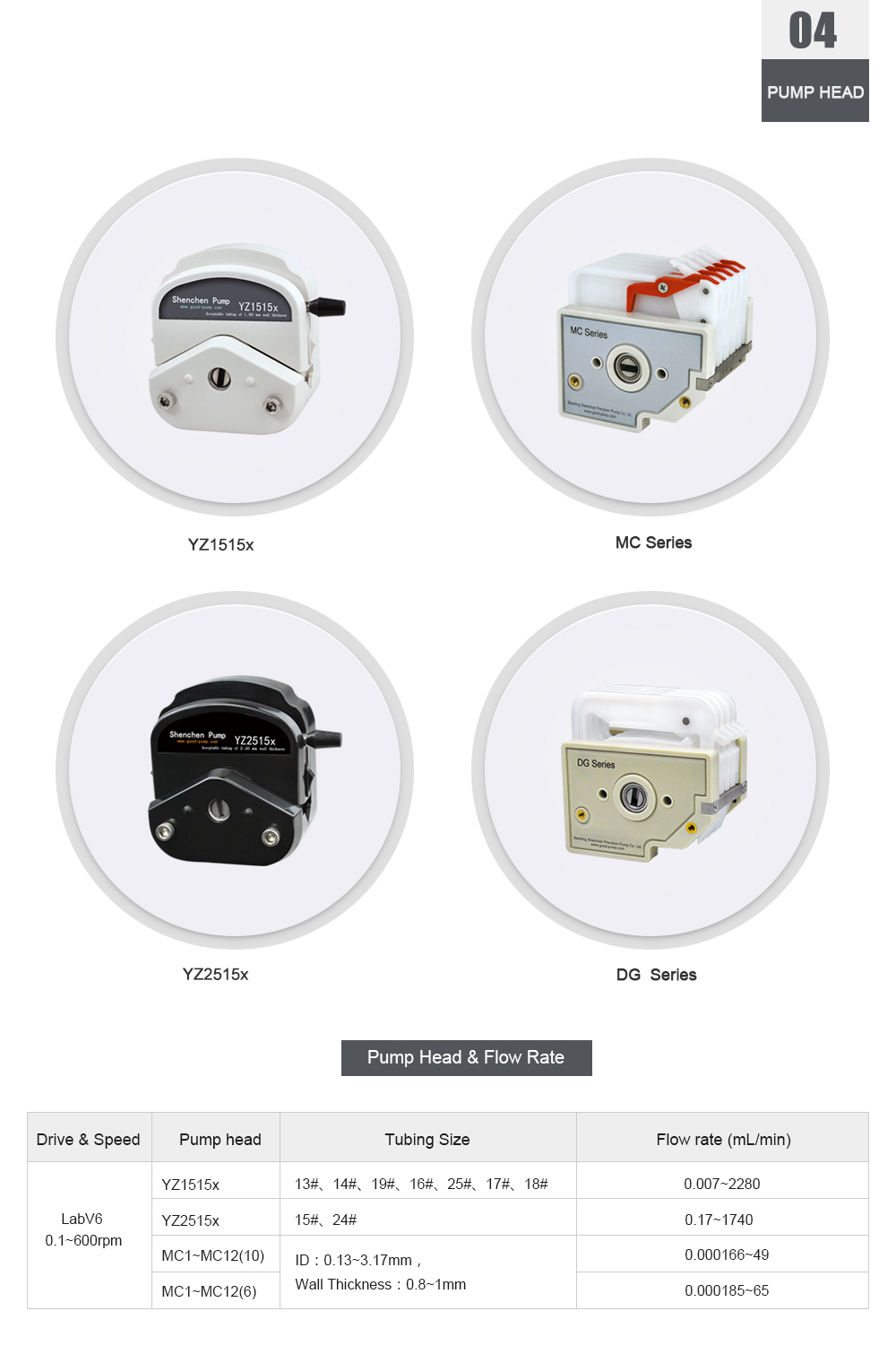 Model No:LabV6 Category:Flow Rates Peristaltic Pump (Intelligent Type) FlowRate:0.000166-2280mL/min |