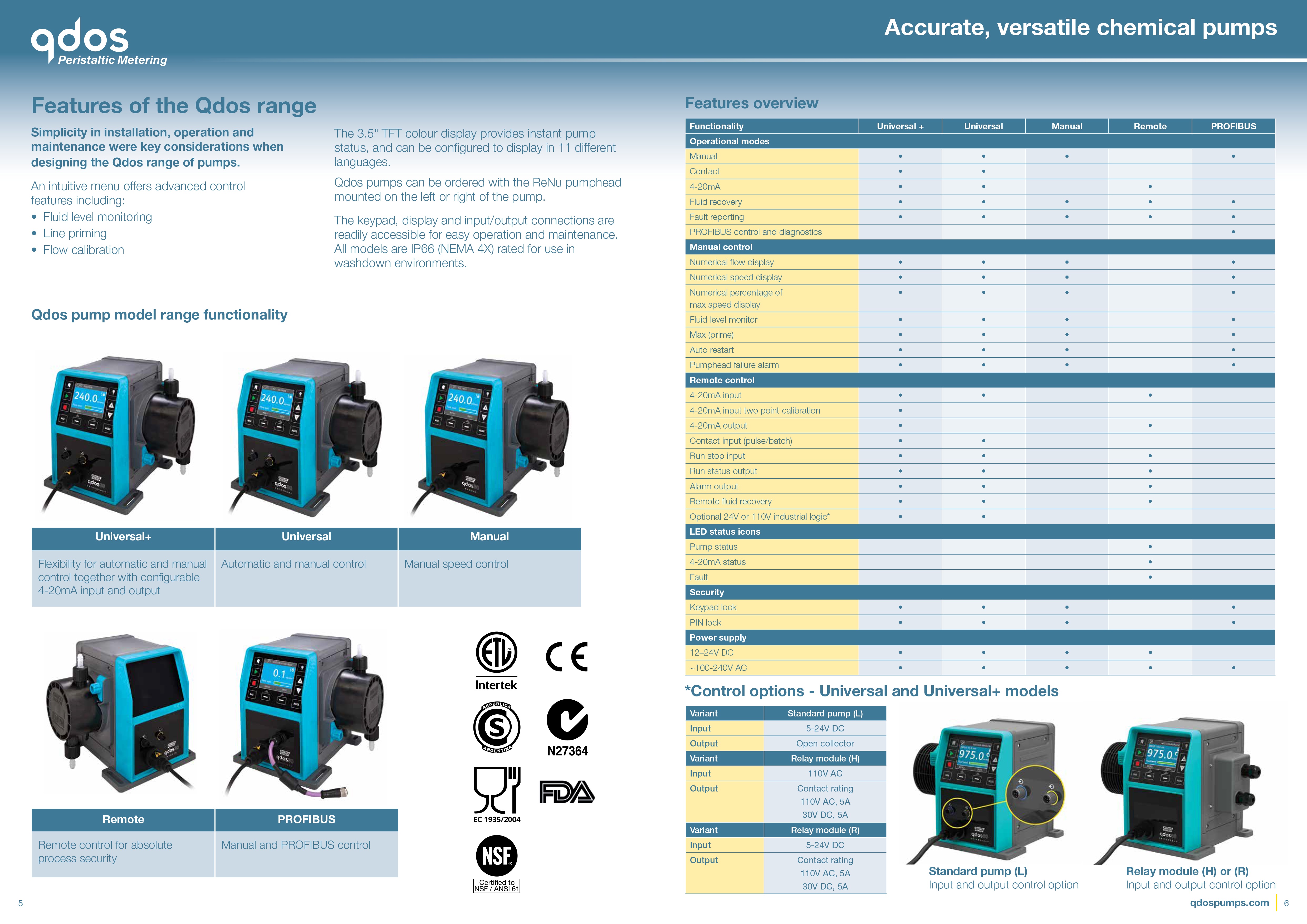 Qdos pumps eliminate the need for ancillary equipment while ensuring accurate, linear and repeatable metering across all process conditions.Technical specifications